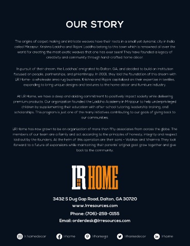 LR Home- a wholesale area rug business. Krishna and Rajani capitalized on their expertise in textiles,