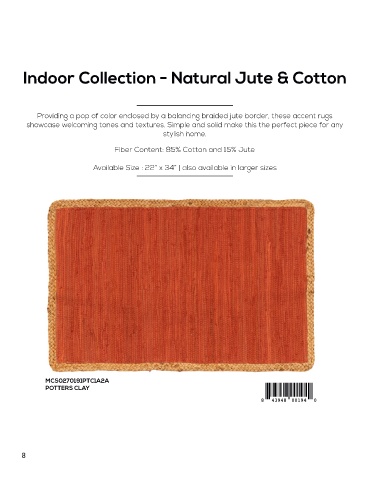 Providing a pop of color enclosed by a balancing braided jute border, these accent rugs