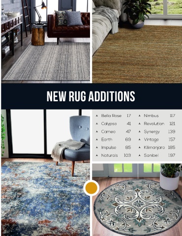 New RUG Additions © Bella Rose 17 © Nimbus 117 © Calypso 41 © Revolution 121 © Cameo 47 © Synergy 139 © Earth 69 © Vintage 157 © Impulse 85 © Kilimanjaro 185 © Naturals 103 © Sanibel 197 11 12
