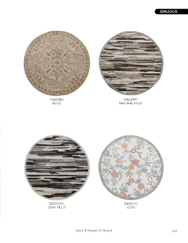 SINUOUS SINUOUS 54118IVN 54119GYR 54120BEI 54121NMT IVORY NAVY GRAY RUST BEIGE NATURAL MULTI 54122GML 54161IVO GRAY MULTI IVORY 54120BEI BEIGE 133 Sizes 4' Round | 6' Round Sizes 4' Round | 6' Round 134