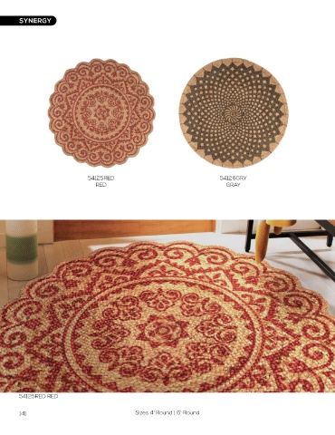 SYNERGY SYNERGY 54125RED 54126GRY 54127BLK 54128IND RED GRAY BLACK INDIGO 54129RED 54130BLU NEW ADDITION RED BLUE 54125RED RED 141 Sizes 4' Round | 6' Round Sizes 4' Round | 6' Round 142