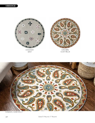 VIBRANCE VIBRANCE 03564GRY 03565IML 03568IVD 03569BLU GRAY IVORY MULTI IVORY RED BLUE 03566BEI 03567IVU BEIGE IVORY BLUE 03565IML IVORY MULTI 147 Sizes 5' Round | 7' Round Sizes 5' Round | 7' Round 148