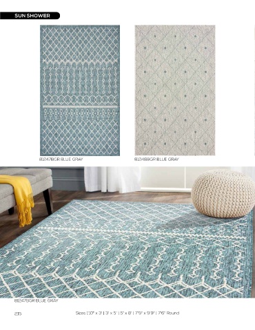 215 Sizes 1'10" x 3' | 3' x 5' | 5' x 8' | 7'9" x 9'9" | 7'6" Round Sizes 1'10" x 3' | 3' x 5' | 5' x 8' | 7'9" x 9'9" | 7'6" Round 216
