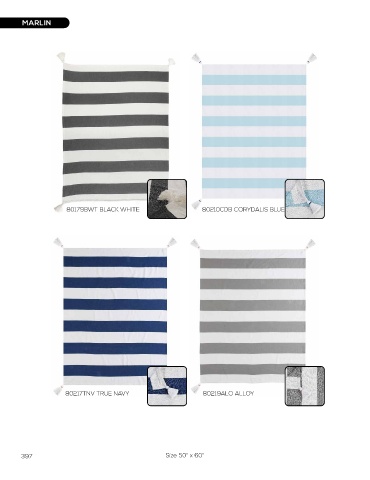MARLIN MARLIN 80179BWT BLACK WHITE 80210CDB CORYDALIS BLUE 80217TNV TRUE NAVY 80219ALO ALLOY 80219ALO ALLOY 397 Size 50" x 60" Size 50" x 60" 398