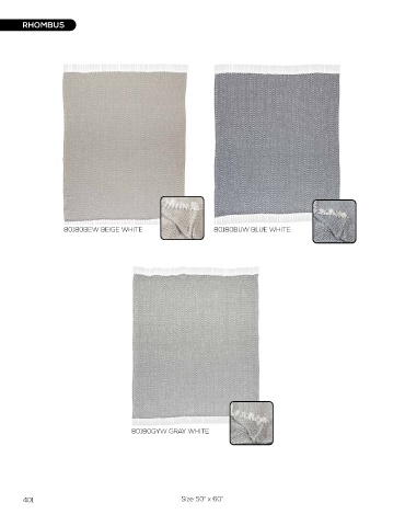 RHOMBUS RHOMBUS 80180BEW BEIGE WHITE 80180BUW BLUE WHITE 80180GYW GRAY WHITE 80180BUW BLUE WHITE 401 Size 50" x 60" Size 50" x 60" 402