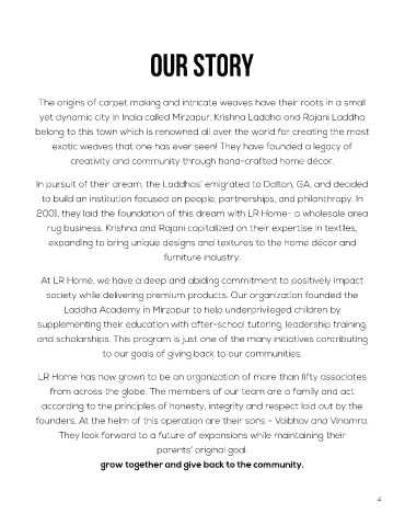 rug business. Krishna and Rajani capitalized on their expertise in textiles,