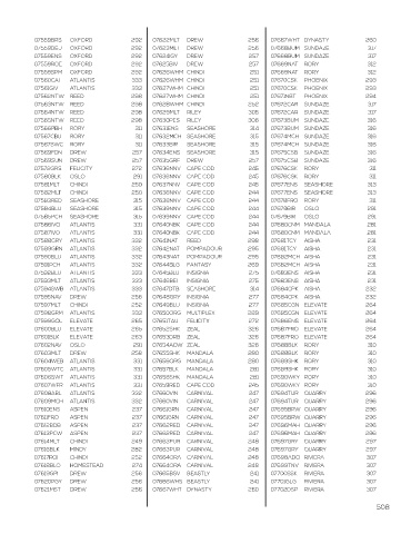 07314BEI  INSIGNIA  277  07378NAV  SEASHORE  314  07497GYW DYNASTY  260  07564NTW  REED  298  07629MLT  RILEY  305  07672CAR  SUNDAZE  317