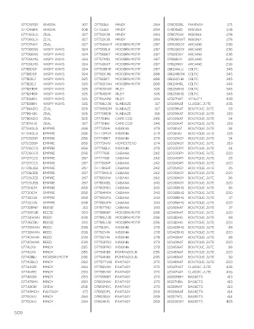07746GRI MINDY 283 07799BBT FANTASY 270 16016NBH BASKETS 413 20015MLT PET BOWLS 504 34042BLU PACIFICA 354 54079IVU DAZZLE 221