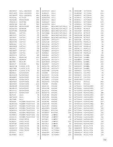 54107MLT SINUOUS 222 54161IVO SINUOUS 134 80195CBU DIAMOND 380 81186BLU DENMARK 377 81462BWE ANTIQUITY 170 81648NVG SANIBEL 200